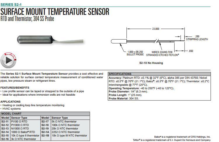 美国dwyer德威尔温度传感器S2-1A,S2-1B,S2-1C,S2-1D,S2-1E,S2-1F