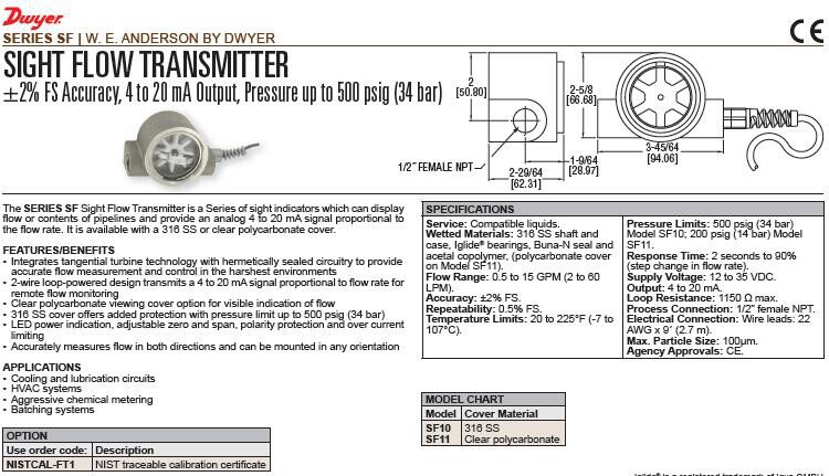 美国Dwyer德威尔带流量视窗的流量传感器变送器SF10,SF11