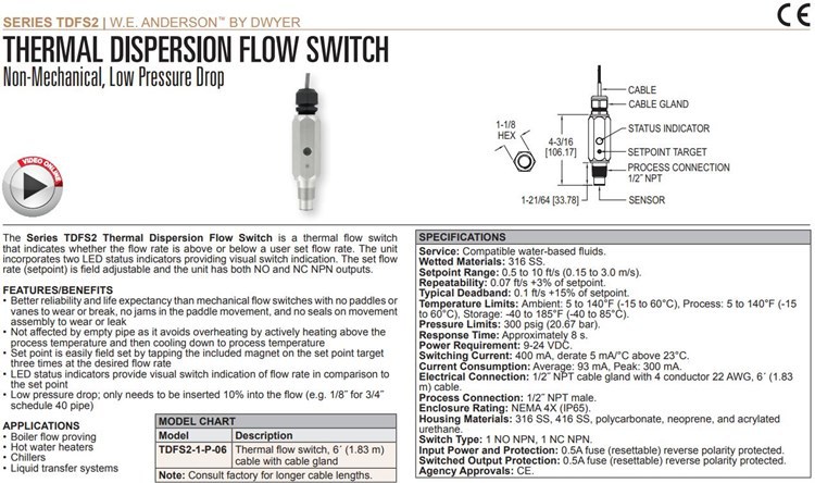 美国Dwyer德威尔热式流量开关TDFS2-1-P-06,TDFS2-2-C-06