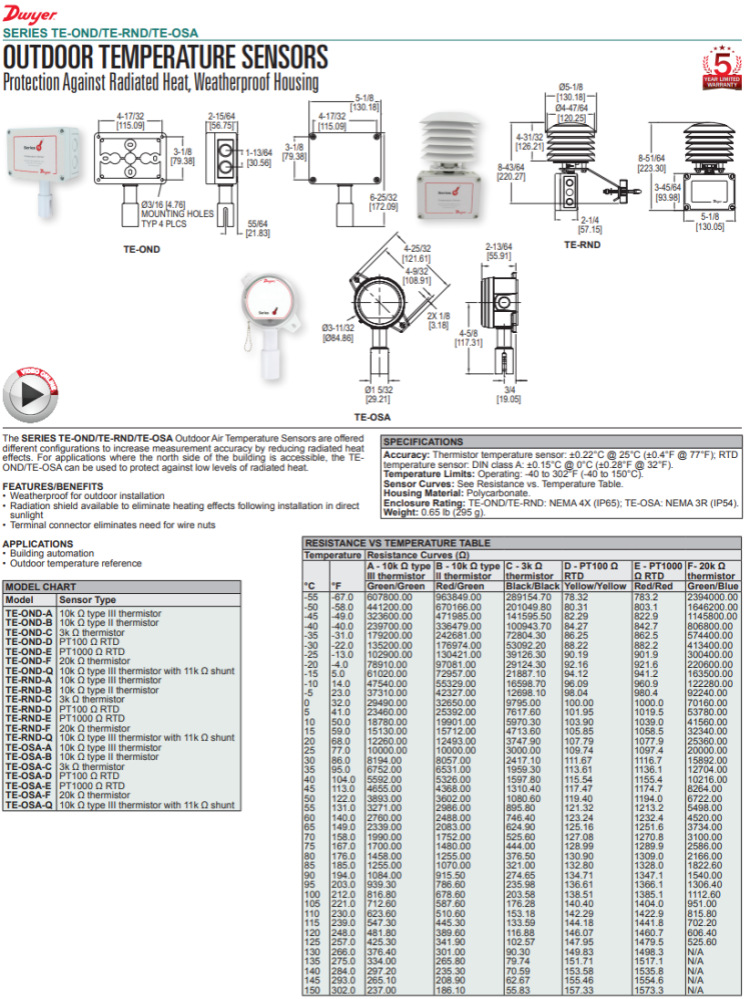 美国Dwyer德威尔温度传感器TE-RND-D,TE-RND-E,TE-RND-A,TE-RND-B