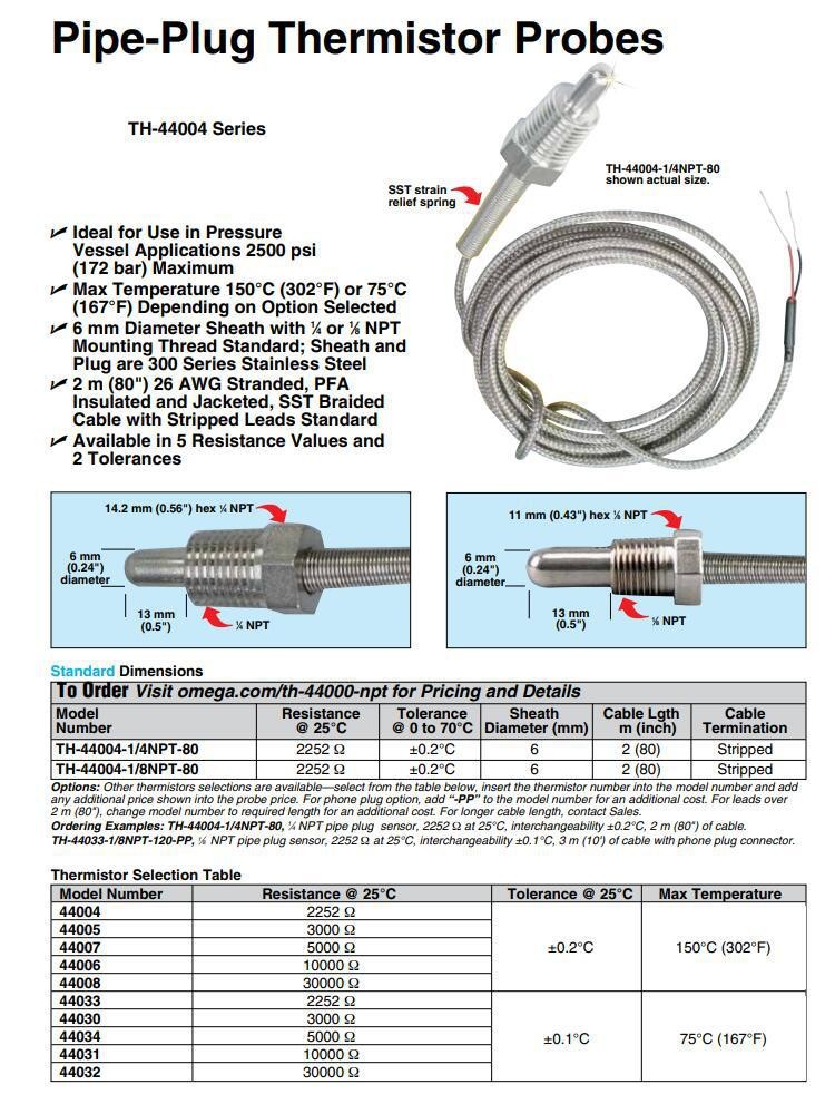 美国OMEGA奥米佳TH-44004-1/4NPT-80热敏电阻TH-44004-1/8NPT-80