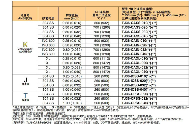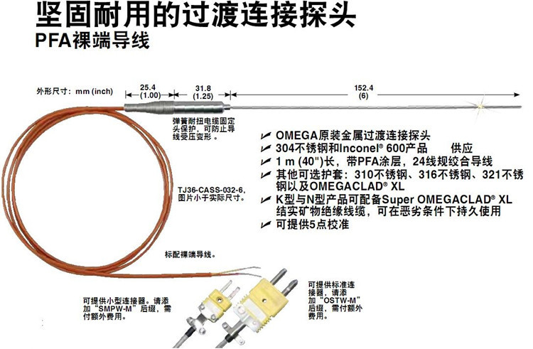 OMEGA热电偶TJ36-CAXL-032G-6,TJ36-CAXL-032E-6,TJ36-CAXL-032U-6-12