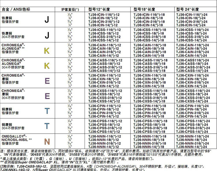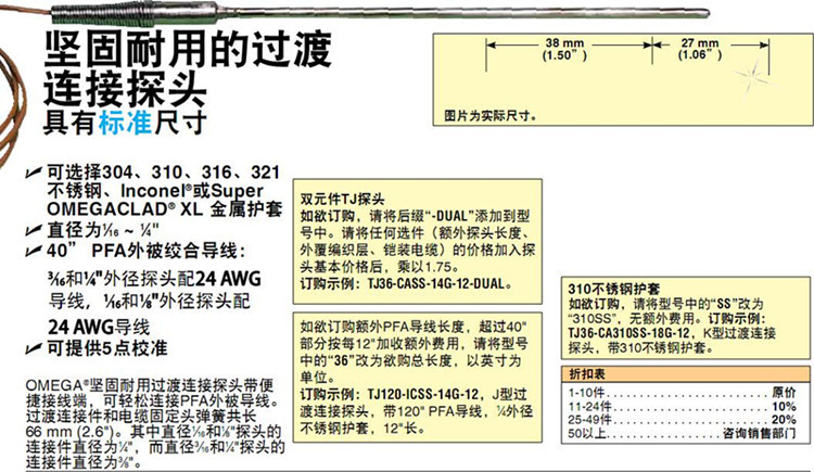美国OMEGA奥米佳热电偶TJ36-CXIN-14U-6,TJ36-CXIN-316U-6-12-18-24-36