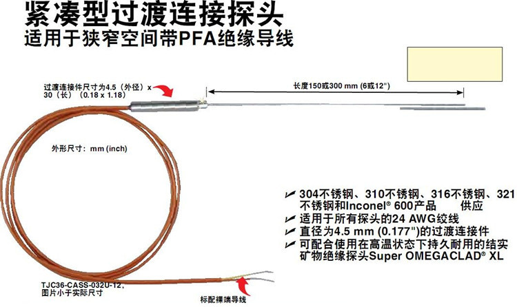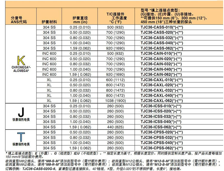 OMEGA热电偶TJC36-CXSS-010U-6,TJC36-CXSS-020G-12,TJC36-CXSS-020E-6