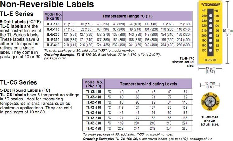 美国OMEGA奥米佳温度标签TL-C5-105-30,TL-C5-140-10,TL-C5-190-30-10