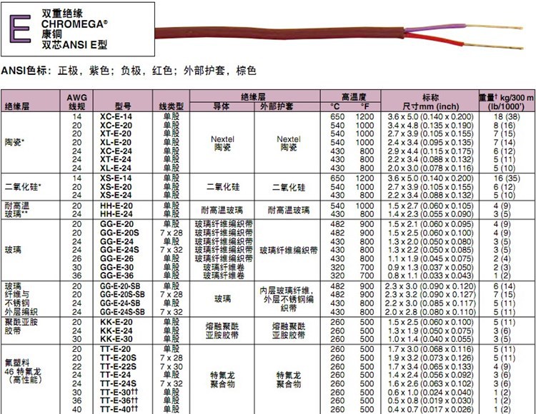 美国OMEGA奥米佳热电偶线TT-E-20,TT-E-20S,TT-E-24S-500,TT-E-24-1000