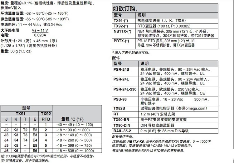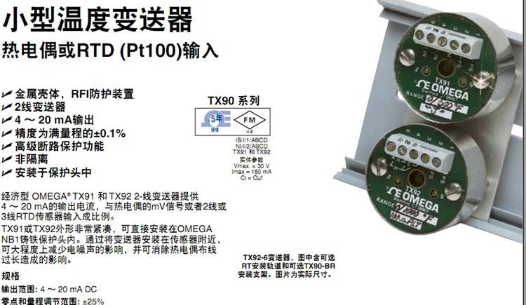 美国OMEGA奥米佳RTD温度变送器TX92-2,TX92-3,TX92-4,TX92-5