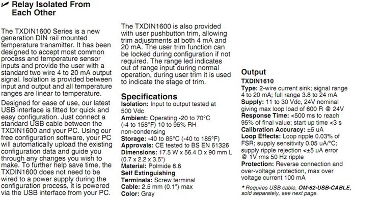 美国OMEGA奥米佳变送器信号调节器TXDIN1610,TXDIN1620,TXDIN1630