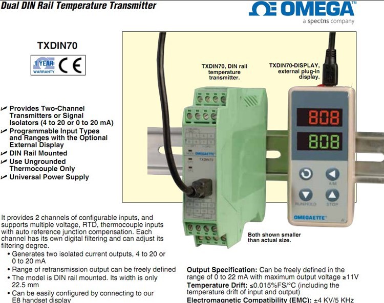 美国OMEGA奥米佳温度变送器TXDIN70,TXDIN70-24V,TXDIN70-DISPLAY
