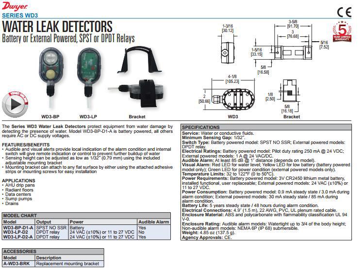 美国dwyer德威尔漏水检测仪WD3-BP-D1-A,WD3-LP-D2,WD3-LP-D2-A