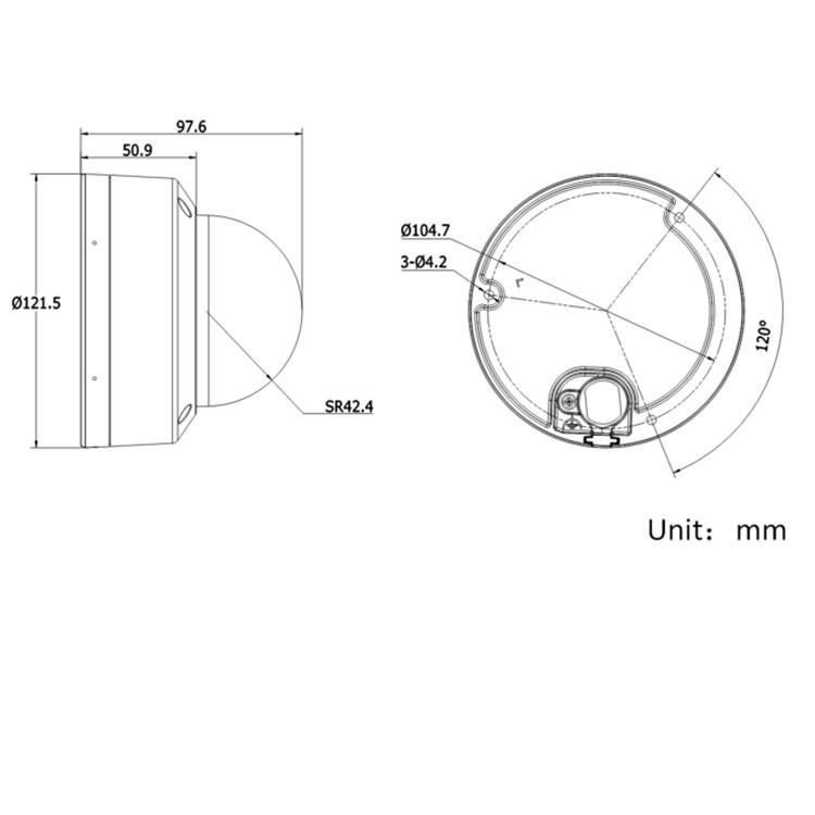DS-2CD2726F(D)WDA3-IZS 海康威视200万 1/2.7" CMOS 智能变焦半球型网络摄像机 外形尺寸: