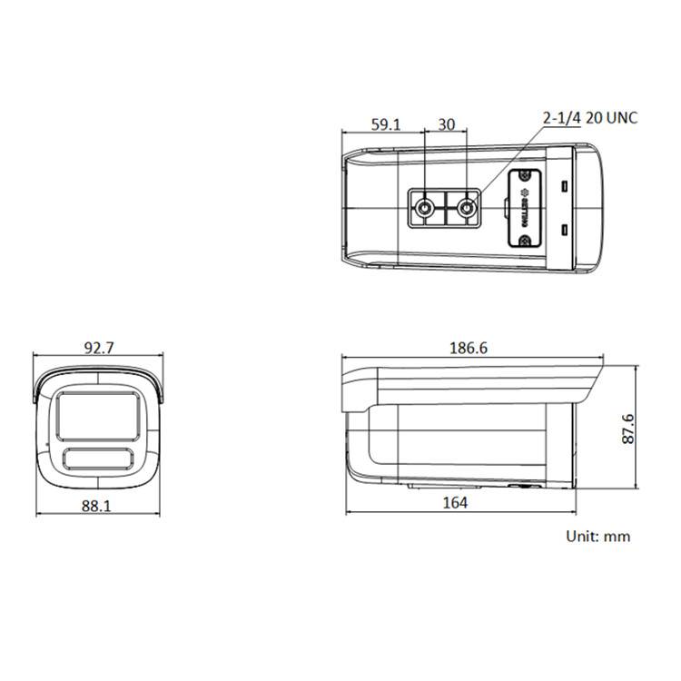 DS-2CD2646F(D)WDV3-LZS(2.7-8mm) 海康威视400万 1/3" CMOS 白光全彩变焦筒型网络摄像机 外形尺寸: