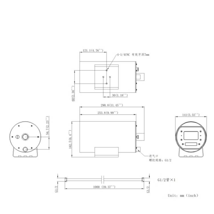 DS-2XC8247FWD-(X)ZS/T3 海康威视400万1/3" CMOS耐高温风冷筒型网络摄像机 外形尺寸: