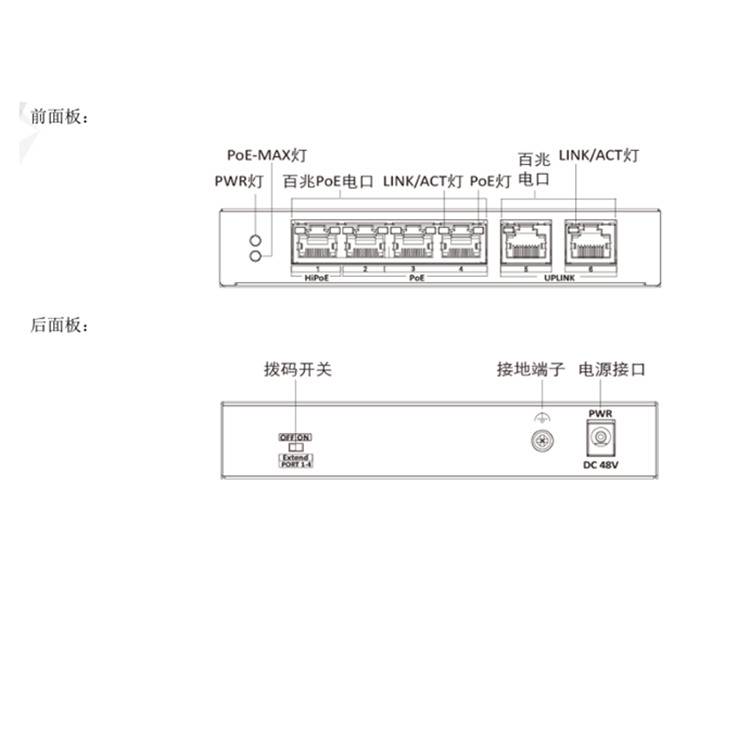 提供1个百兆HiPoE电口,3个百兆PoE电口,2个百兆电口。