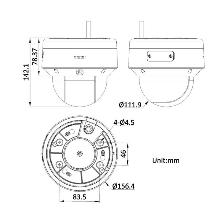 iDS-2PT3D40IX-DE(C0)(T5) 海康威视PTZ系列400万1/1.8 CMOS 4倍红外智能半球摄像机 外形尺寸: