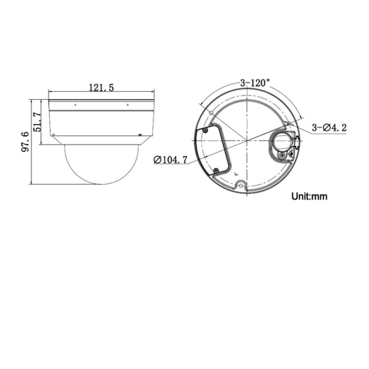 DS-2XA8D45F/GF-IZS 海康威视400万星光级1/2.7" CMOS工服检测专用半球型网络摄像机 外形尺寸:
