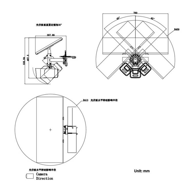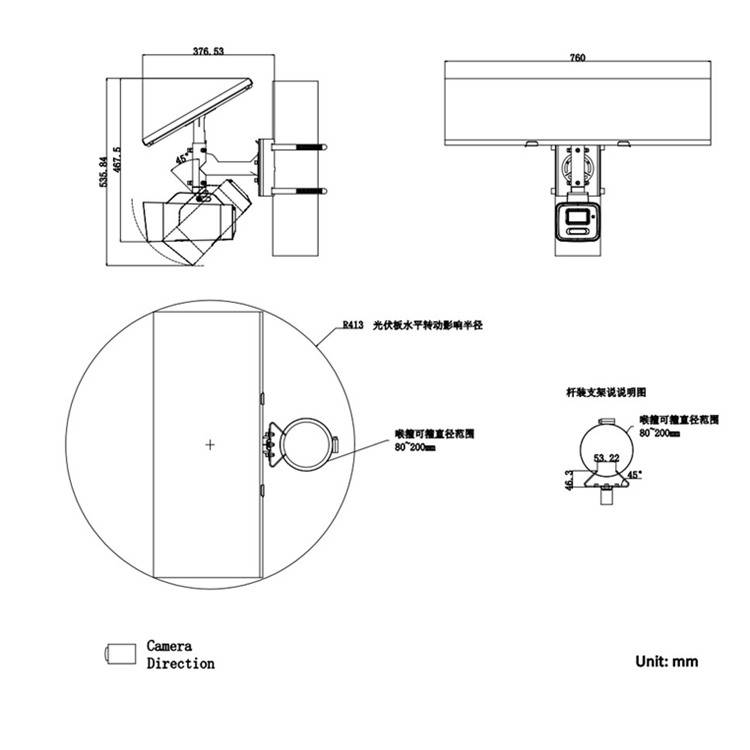 DS-2XS6A85-LSG/CM20S45 海康威视800万4K 1/1.2" CMOS太阳能摄像机套装 外形尺寸: