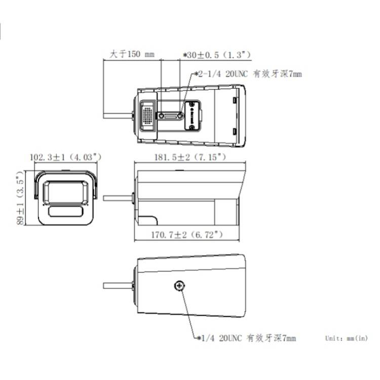 DS-2CD7T25DWDV3-ISGL 海康威视200万轻智能筒型网络摄像机 产品尺寸: