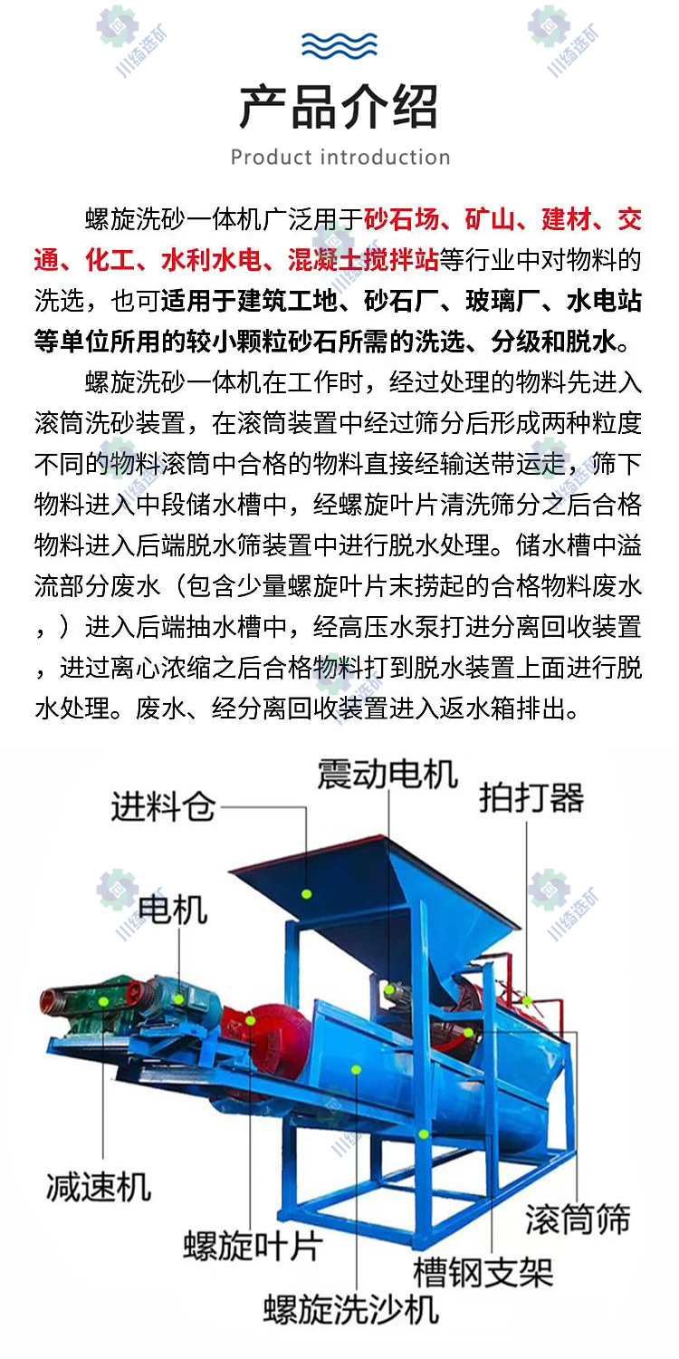 洗沙机又叫洗砂机,主要用于砂类产品的去除杂质(如粉尘)的机器,因较多使用水洗的方法,故成为洗砂机。一般是对人工机制砂进行清洗(由石料破碎而成)。市场上种类很多,但是大多功能单一,只有少数能洗岩石,洗旱沙,洗河沙,混合洗。用于砂石场、矿山、建材、交通、化工、水利水电、混凝土搅拌站等行业中对物料的洗选。