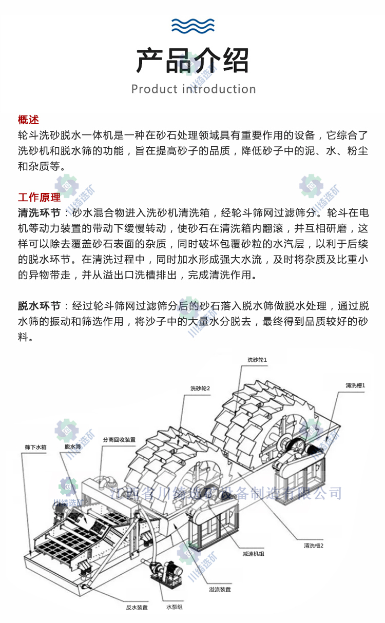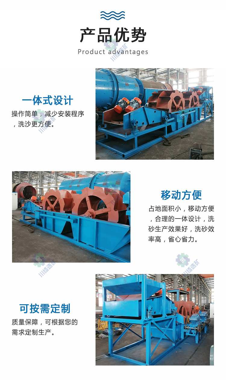轮斗洗砂脱水一体机被广泛用于砂石场、矿山、建材、交通、化工、水利水电、混凝土搅拌站等行业中对物料的洗选,适用于冶金、建材、水电等行业的洗选、分级、除杂等作业,对建筑用砂、筑路用砂石尤为适宜,可清洗200多种物料。