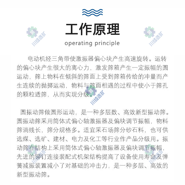 振动筛的别名又叫:三次元振动筛分过滤机-振动筛粉机-旋振筛机-振荡筛-振荡筛-振筛机-圆筛-圆振动筛。利用振动电机激振的原理,使物料在筛面上被抛起,同时向前作直线运动加以合理匹配的筛网从而达到筛分的目的。