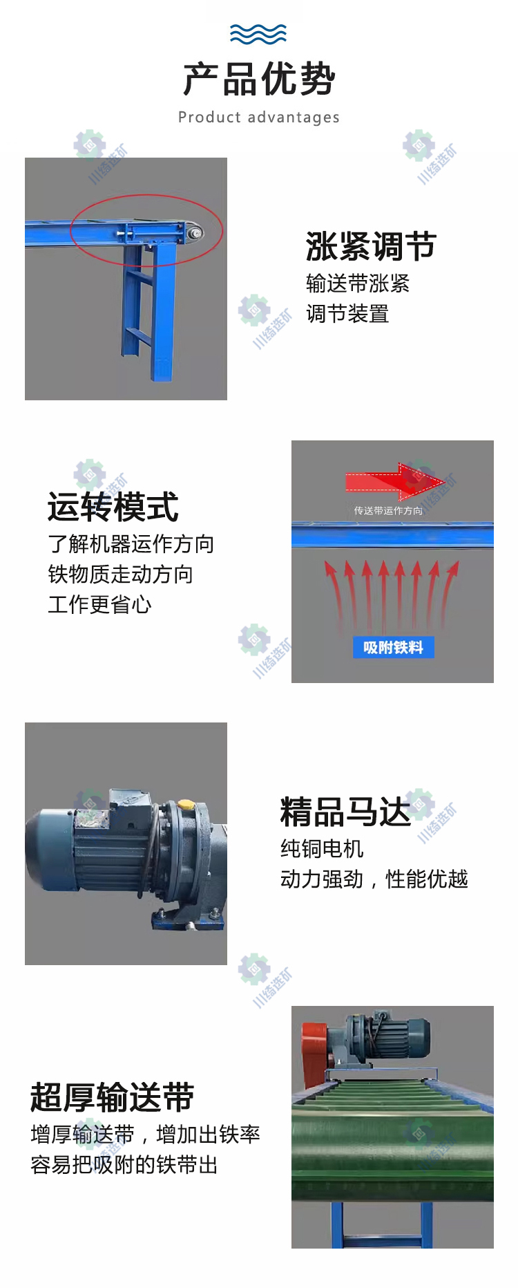 除铁器适用于各行业输料除铁,可实现连续不断的吸、弃铁。