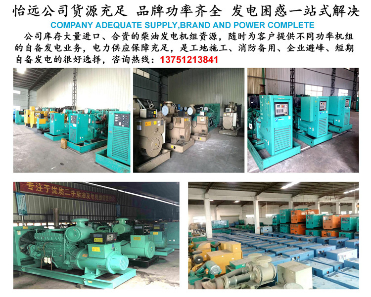 怡远发电机公司经过多年发电机组销售和发电机维修保养以及二*/手发电机组购销等相关业务的发展壮大,我公司现拥有300多台各品牌各功率段的柴油发电机组。