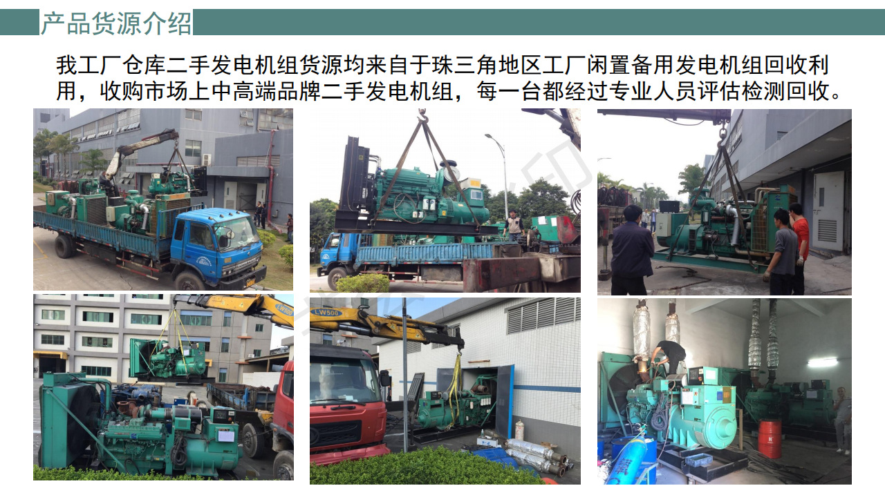2.所有二手油发电机组均来自珠三角工业地区工厂做备用应急发电闲置不用后转让出售,我公司经挑选 和检测后回收利用