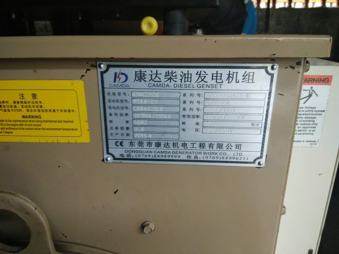 250kw康明斯柴油发电机发电机组,从深圳一家电子厂回收的备用发电机。大公司康达2011年出品,机器九成新,累计使用了271.6小时。整机没有修过,机组状况良好,能长时间持续发电使用。