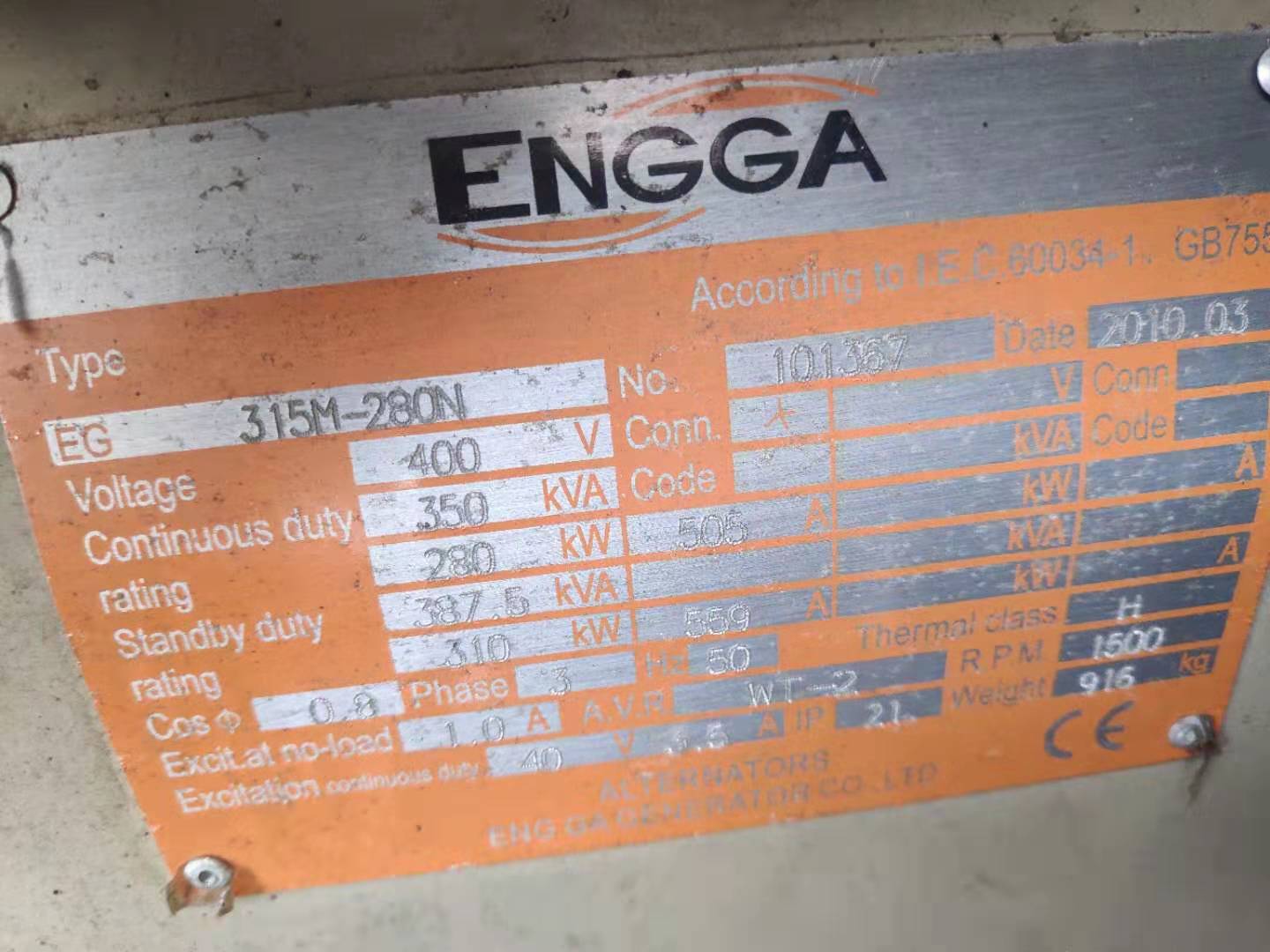 310kw发电机组参数