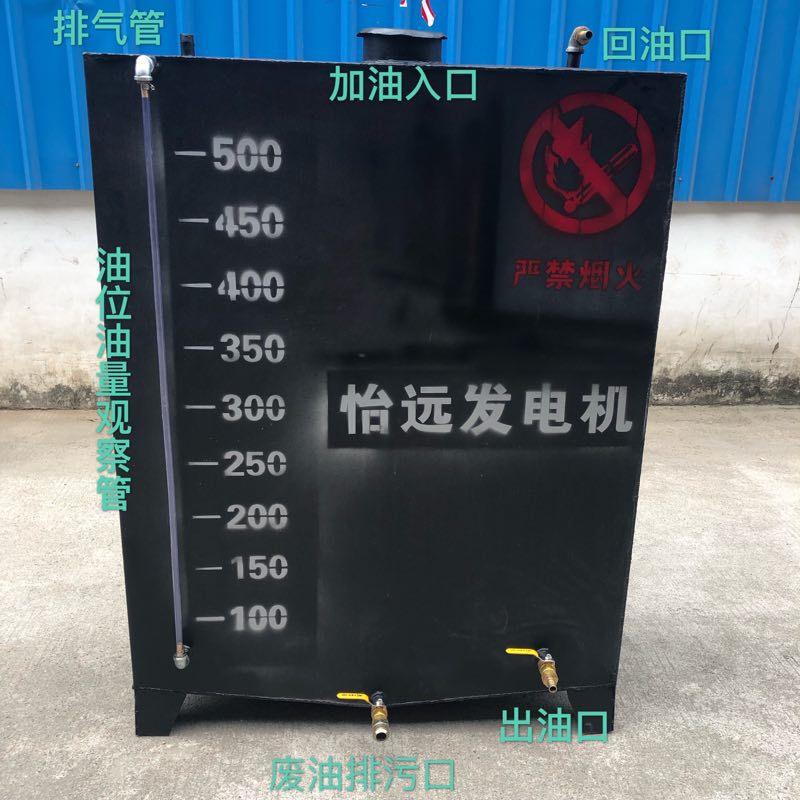 油箱采用人性化设计,有加油口、排污口、排气口、进油口、回油口、液位显示计。