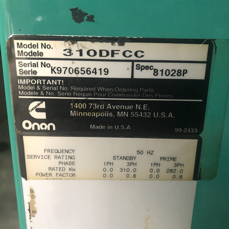 310Kw美国进口康明斯发电机组,外观成色九成新,型号:,2012年生产出厂,发电使用了1300个小时左右,控制器为电脑智能型控制器,电球为三相无刷纯铜的交流电机,进口机组质量远比国产的和合资的更好,省油耐用,公司回收时做了全面的检查,由于闲置已久,部份线路已经老货,我们均已进行全面的更换,还做了半小时左右的负载测试,测试水温、油压、频率等均正常。适合工厂酒店备用发电使用。有喜欢的老板请直接来电咨询。