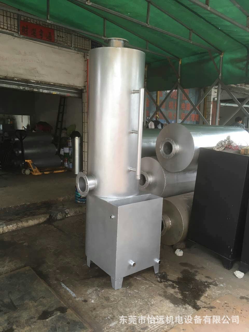 黑烟净化器属于“湿式”的复合式火烟(灰尘)净化设备,整个设备主要架构采用耐腐蚀不锈钢材料制作。该产品运用的先进技术,采用波纹状斜板填料,风机和净化器是连为一体的,运用空气动力学,在精密设计的一体化结构内,由于风机的作用力,净化器内会产生搅动的、沸腾的水层和多层水膜。综合利用水气反向冲击、洗涤、水膜过滤、泡沫吸收、富集、多次机械碰撞、截流、降、冷凝、高效吸附等原理,使黑烟(灰尘)得到三次水净化处理和三次机械净化处理后,从而得到彻底的净化。