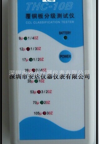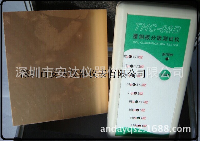 | 铜箔测厚仪THC-08B覆铜板分析级测试仪 铜箔测厚仪THC-08B,THC-08B覆铜板分析级测试仪当您作为专业线路板厂采购人员欲购买覆铜板,对铜箔厚度产生疑问时,当您作为材料检验或车间生产质检人员,对基板的铜箔把握不准时,您可能会有深刻体会,要是有一台可以装在口袋里随时可以对覆铜板进行复检的“覆铜板分级测试仪”就好了。本公司生产的覆铜板分级测试仪就可以满足您以上的愿望,只需要一秒钟就可以测出覆铜板铜箔的厚度,非常方便,测试数据稳定可靠。
