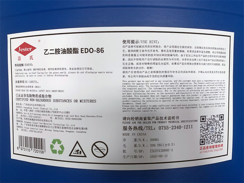 EDO-86由与高碳链油酸合成,具有高有机碱度,在工业合成产品中维持合理的PH值稳定,不易造成产品碱度快速失衡!同时具备去污力迅速、皂化能力突出、除蜡溶解力优异;使用比例浓度较低、持久时间长、防腐蚀、防锈效果优良,保护抛光工件表面持续光洁度以及水洗性好等特点。