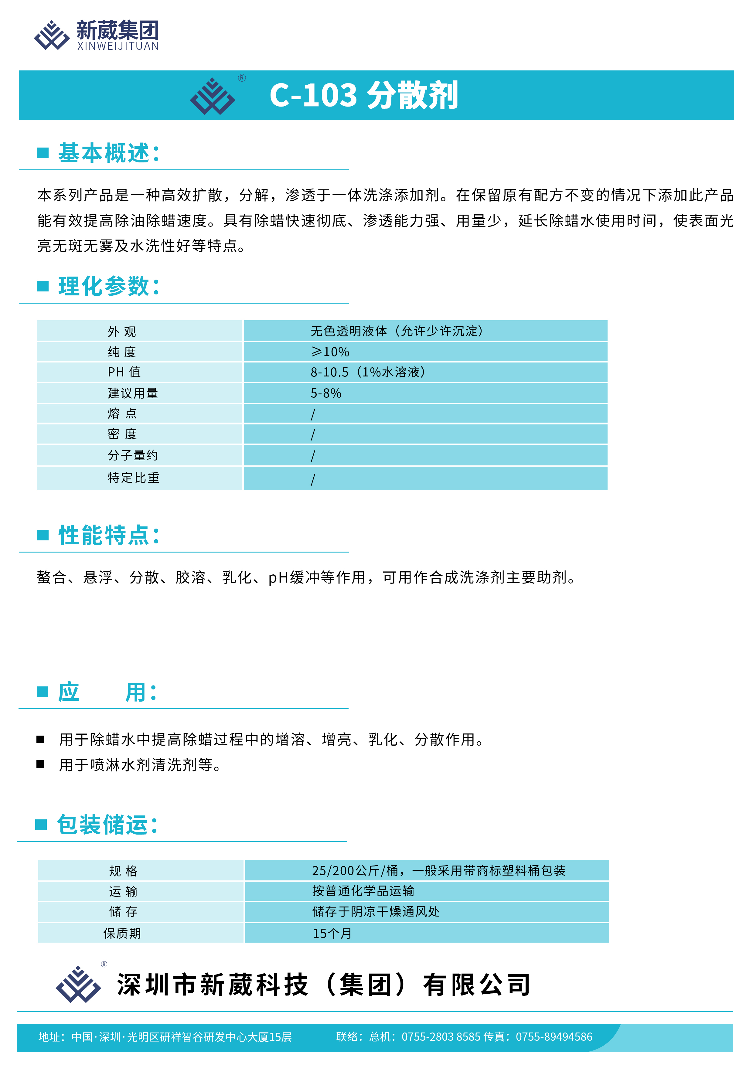 本系列产品是一种高效扩散,分解,渗透于一体洗涤添加剂。在保留原有配方不变的情况下添加此产品能有效提高除油除蜡速度。具有除蜡快速彻底、渗透能力强、用量少,延长除蜡水使用时间,使表面光亮无雾及水洗性好等特点。