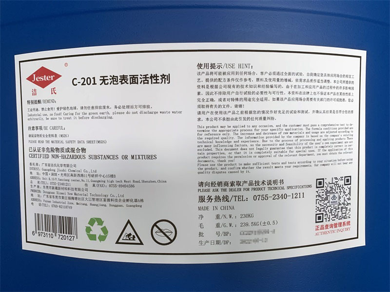 C-201无泡表面活性剂是一种醇醚类无泡乳化剂,在绿色工业用途、清洗、日化洗涤中广泛使用,在行业标准化绿色体系中得到认可。