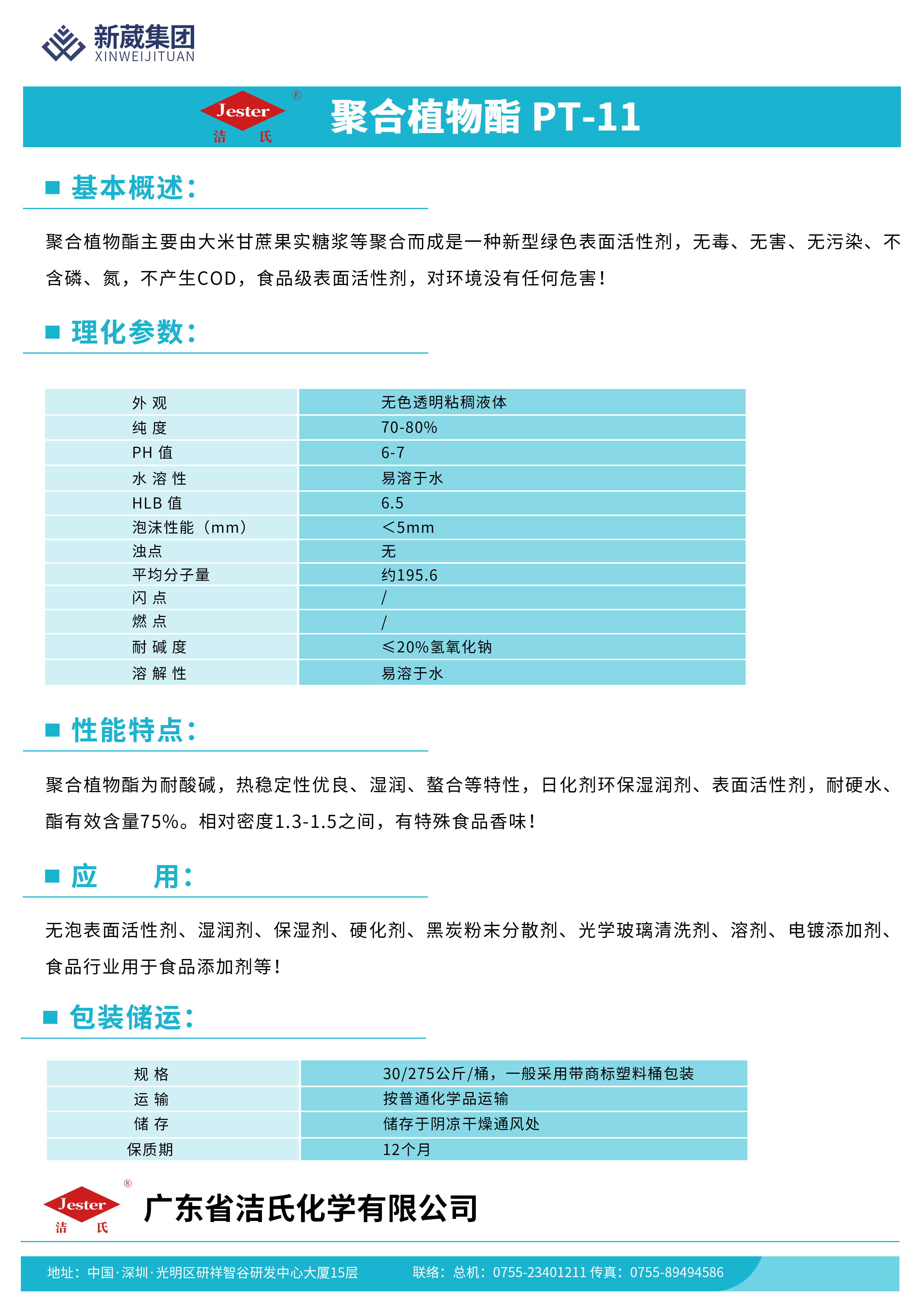 聚合植物酯主要由大米甘蔗果实糖浆等聚合而成是一种新型绿色表面活性剂,无毒、无害、无污染、不含磷、氮,不产生COD,食品级表面活性剂,对环境没有任何危害!