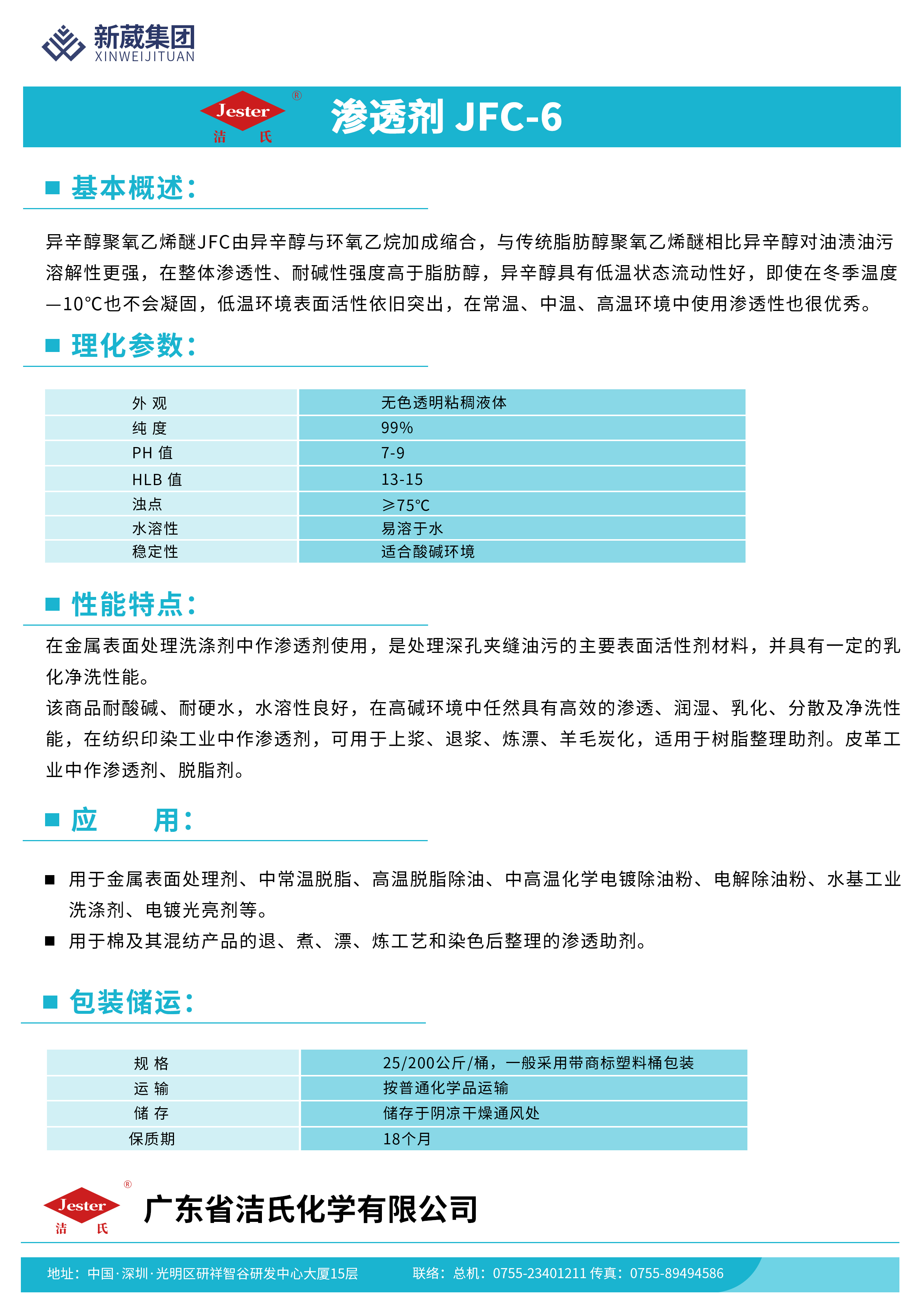 异辛醇聚氧乙xi醚JFC由异辛醇与环氧乙wan加成缩合,与传统脂肪醇聚氧乙xi醚相比异辛醇对油溃油污溶解性更强,在整体渗透性、耐碱性强度高于脂肪醇,异辛醇具有低温状态流动性好,即使在冬季温度-10℃也不会凝固,低温环境表面活性依旧突出,在常温、中温、高温环境中使用渗透性也很优秀。