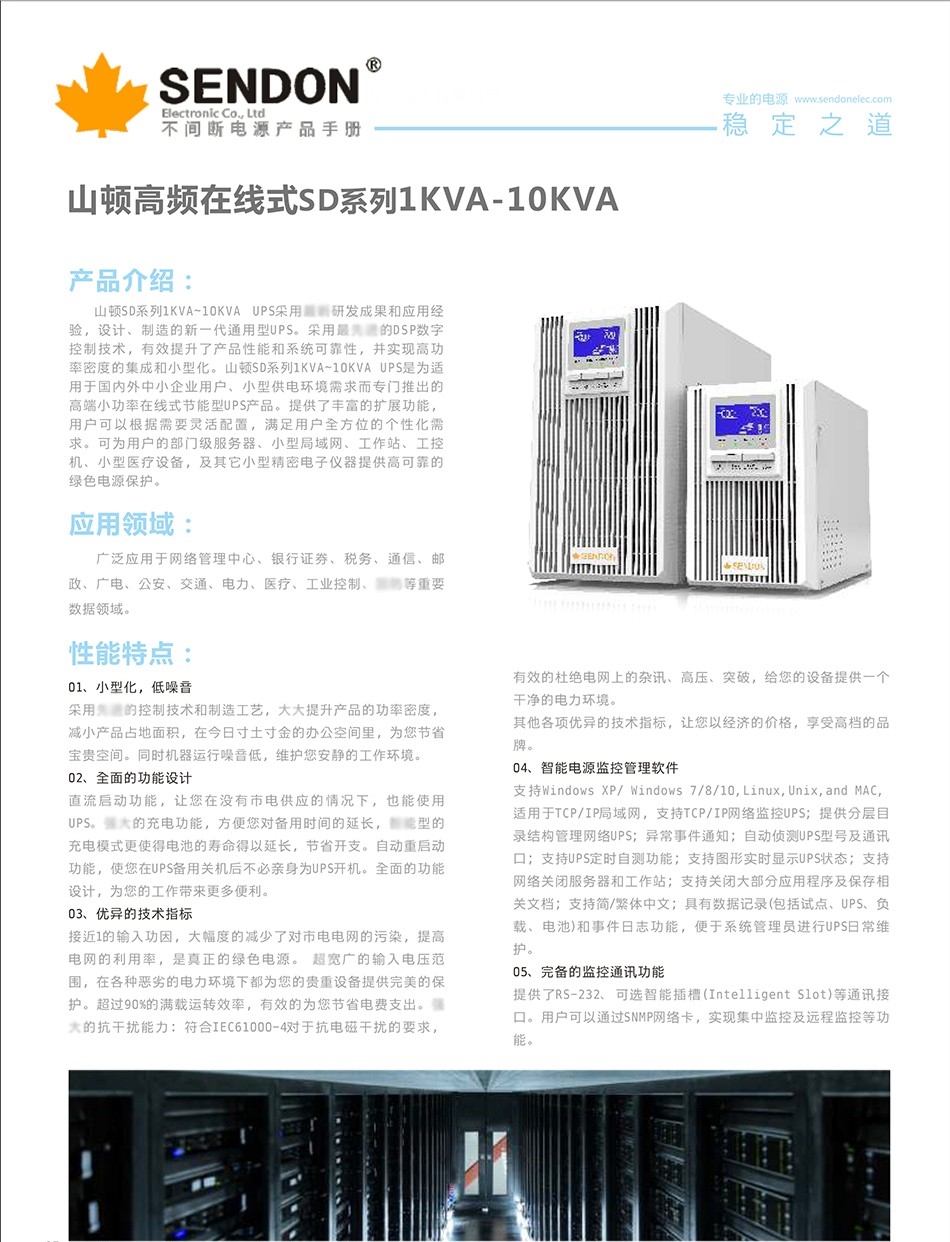 山顿UPS不间断电源SD1KNTL 1KVA 0.8KW长效机外接蓄电池 深圳UPS