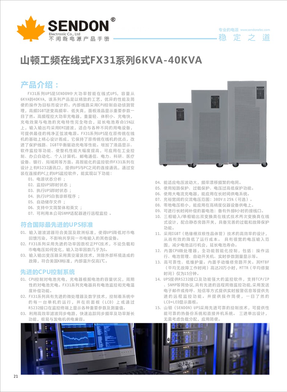 SENDON山顿工频UPS不间断电源FX31-20KVA在线式20KVA/16KW延时外接电池组