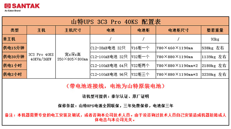 山特(SANTAK)3C3PRO 40KS三进三出在线式企业级UPS不间断电源 3C3 Pro 40KS/36KW单主机