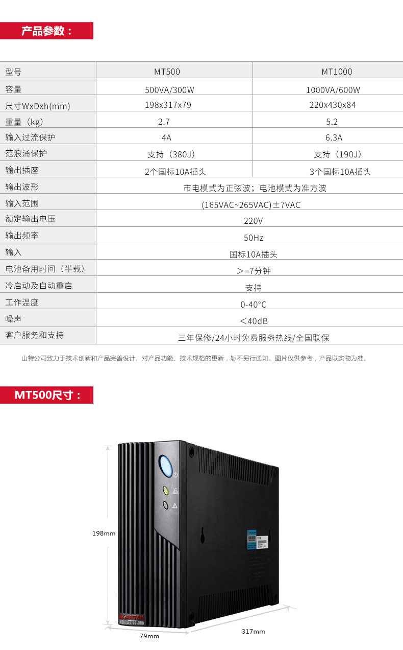山特UPS电源MT500 500VA/300W (SANTAK) 山特UPS不间断电源UPS后备式
