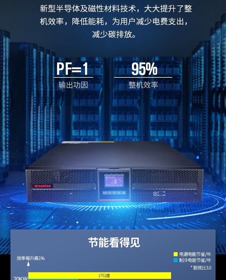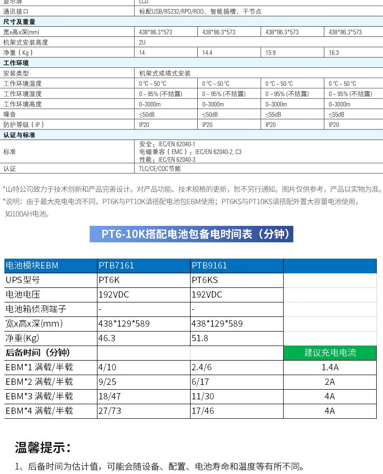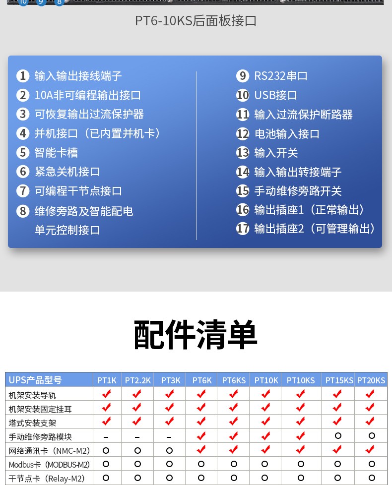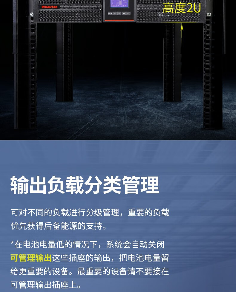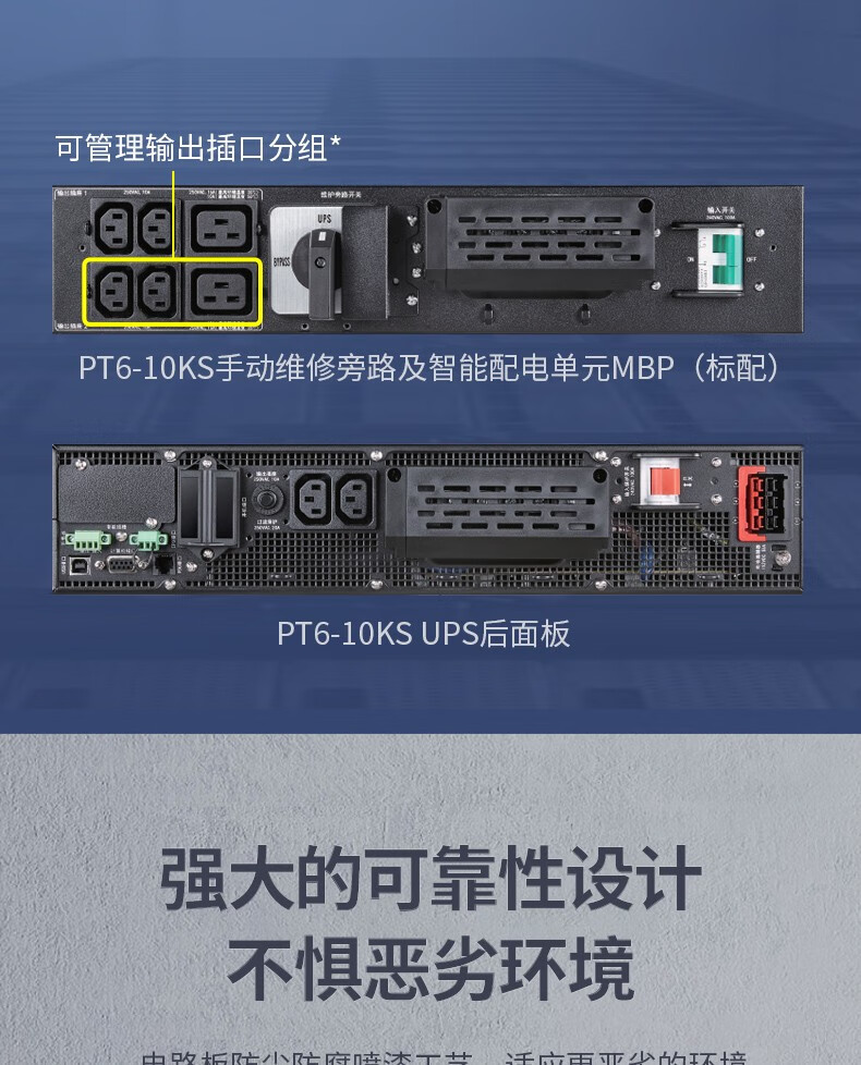 山特(SANTAK)PT10K UPS不间断电源机架式10kVA/10kW网络服务器机房备用电源 单机+1*PTB9161(满载2.4分钟)