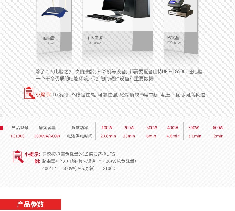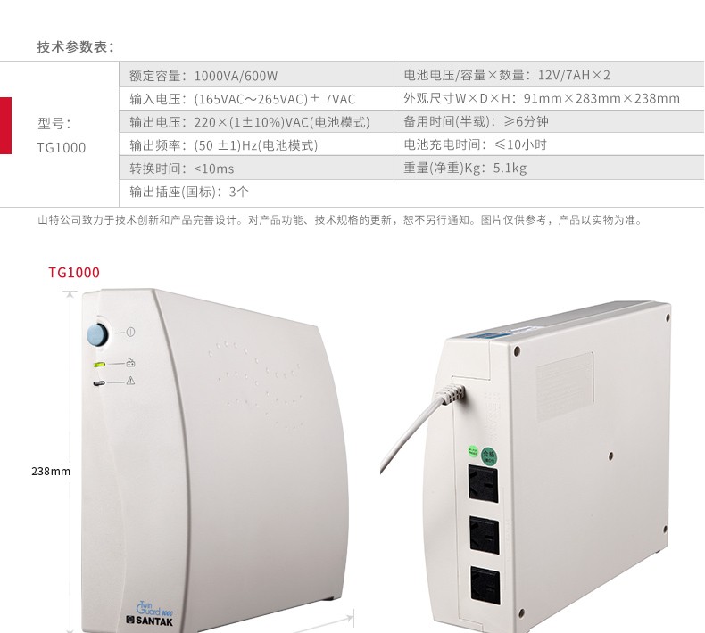 山特(SANTAK) 山特TG1000 后备式ups不间断电源备用电脑1000VA/600W路由器