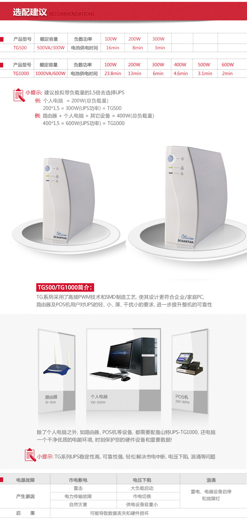 山特(SANTAK) 山特TG系列UPS不间断电源后备式家用办公电脑断电续航小巧美观耐用 TG-E500后备式300W