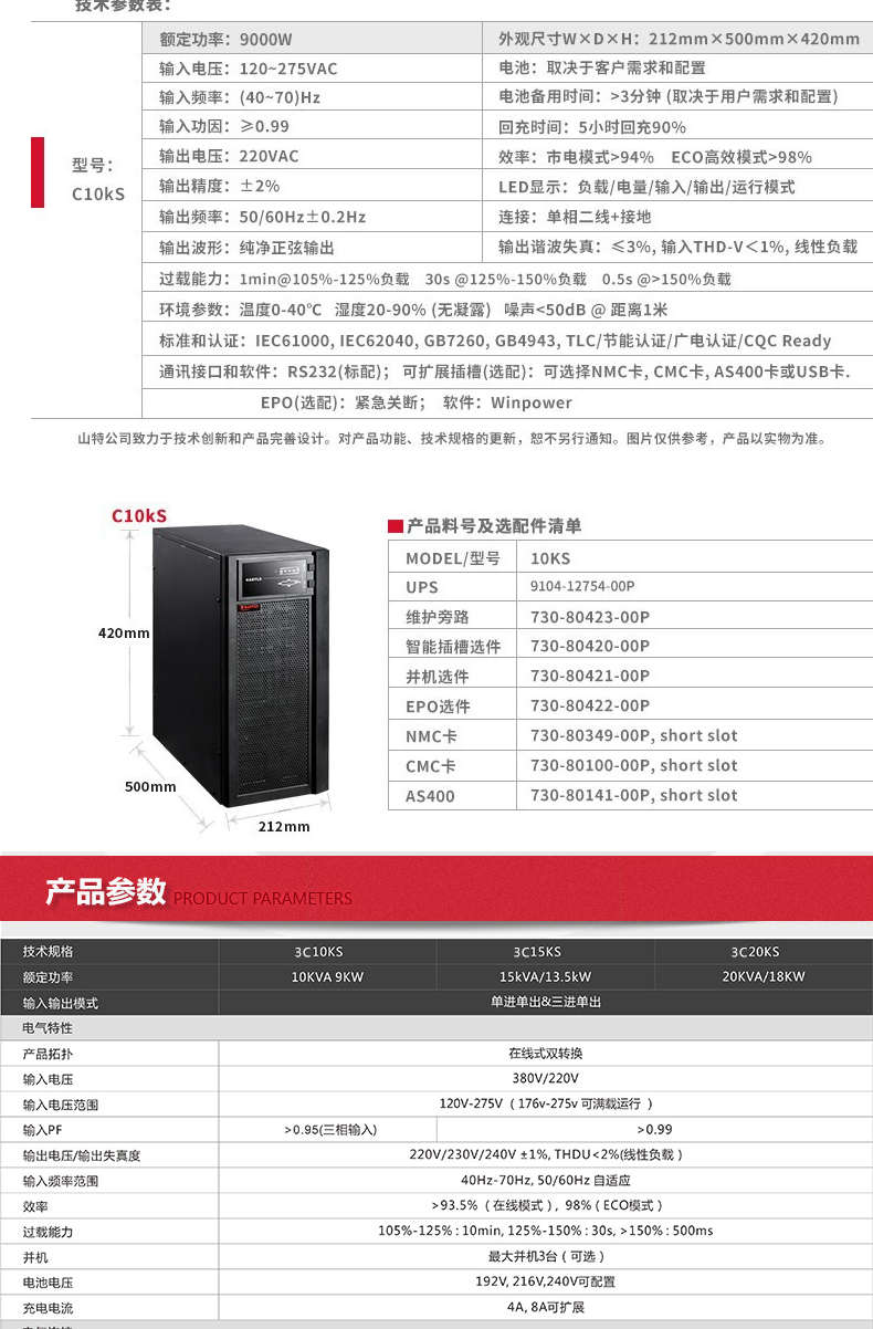 UPS电源3C15KS 三进单出15KVA/13.5KW 深圳上门装好付款