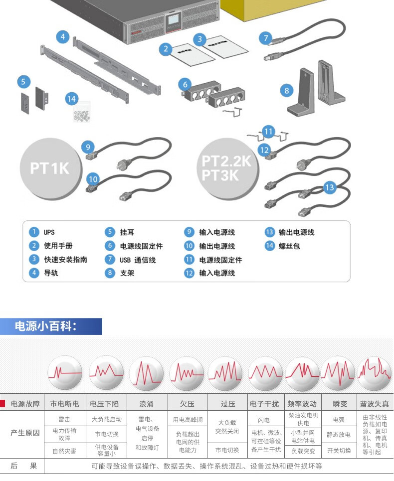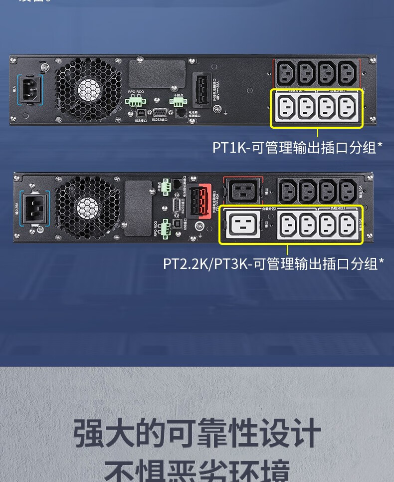 深圳UPS不间断电源PT1KS/PT2KS/PT3KS UPS电源机架式1000VA/1000W服务器机房备用电源