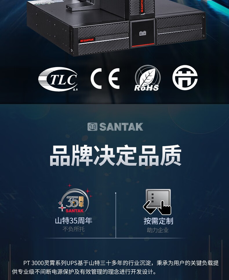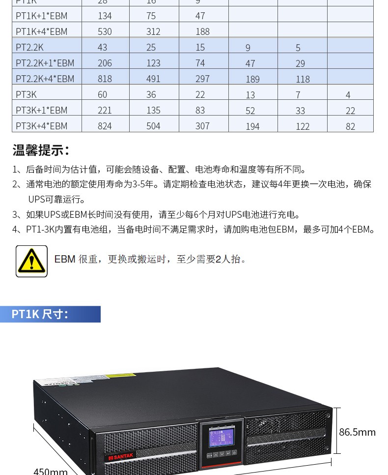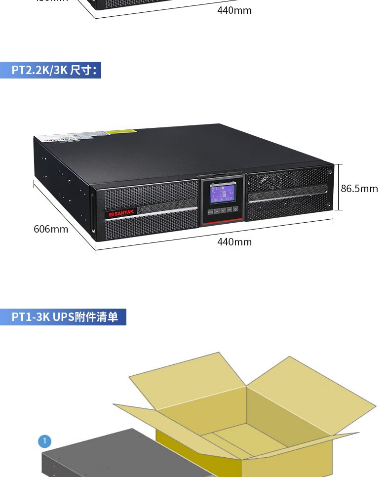 山特(SANTAK)PT1K UPS不间断电源机架式1000VA/1000W网络服务器电源机房 单机+1*PTB9042(满载35分钟)