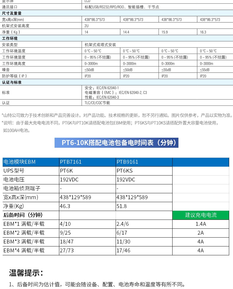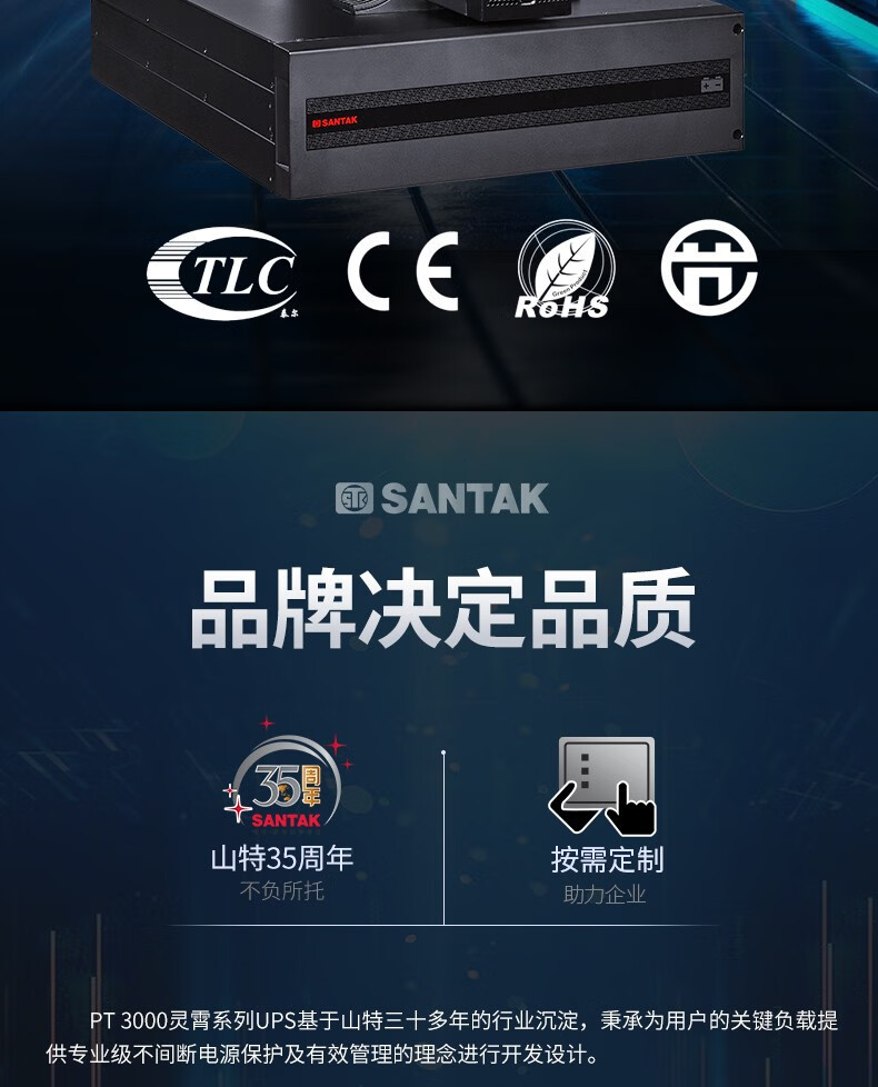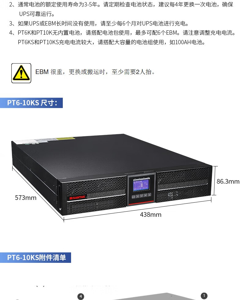 山特(SANTAK)PT6K UPS不间断电源机架式6kVA/6kW网络服务器电源机房 单机+1*PTB7161(满载4分钟)